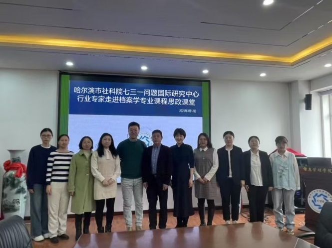 为促进学院本科实习基地与产教融合研究生工作站建设,扎实推进学校“本研一体化”建设,深化本硕课程思政实践教学,作为学院贯彻学校“学风建设年”的系列活动,信息管理学院档案学专业与哈尔滨市社会科学院教学与科研合作签约仪式暨档案学专业思政课堂启动会于2025年3月12日在汇文楼学院会议室举行。哈尔滨市社会科学院副院长周立伟、哈尔滨市社会科学院七三一问题国际研究中心主任宫文婧、中心研究员鲁丹、王雨嫣、岳蓉媛,我院副院长周丽霞、任越,档案学专业全体教师及2023级档案学专业本科生、2024级档案学专业硕士和文献信息学博士研究生参加本次活动。