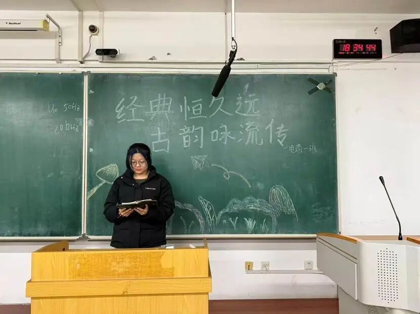 此次晚自习经典诵读活动,让古典诗词从"案头文字"转化为"心灵共鸣",为信管学子的学风养成增添了古典文化的厚重底色,于诵读中涵养"何妨吟啸且徐行"的人生定力,以文化之韵赋能青春成长。(信息管理学院供稿)