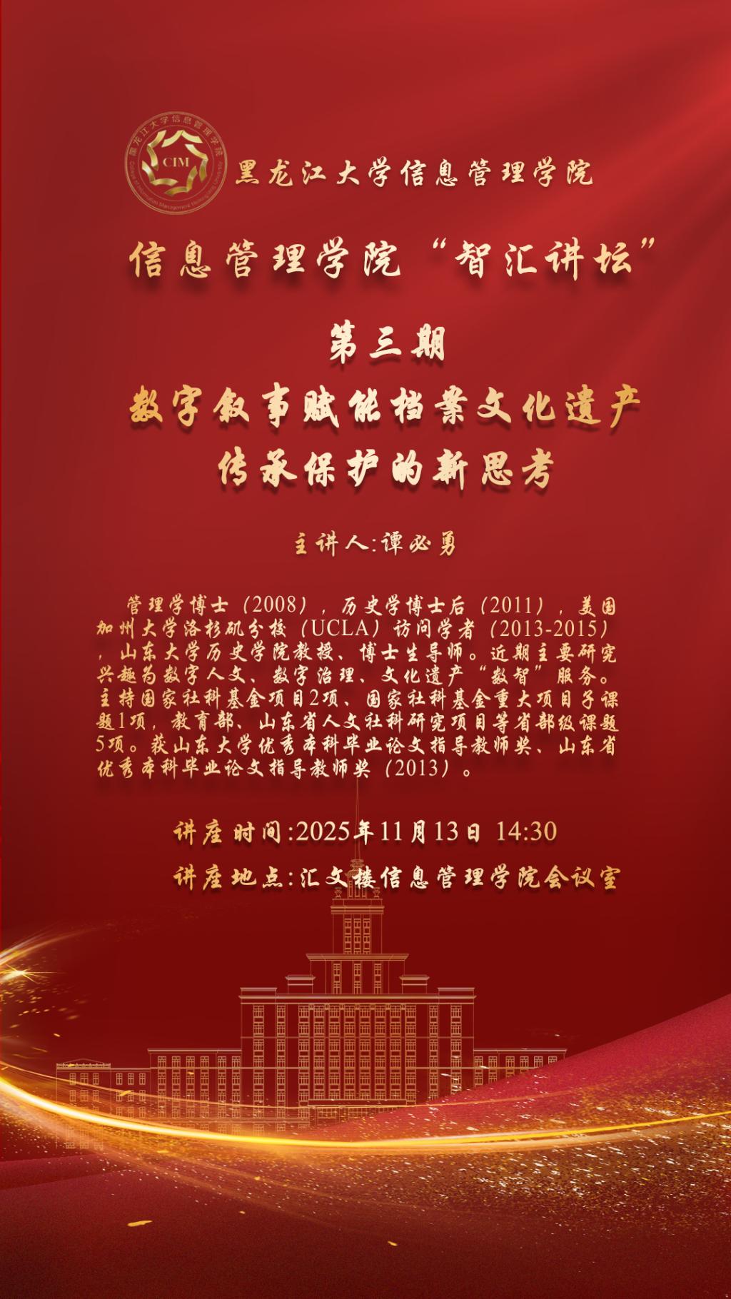 信息管理学院“智汇讲坛”第三期:数字叙事赋能档案文化遗产传承保护的新思考
