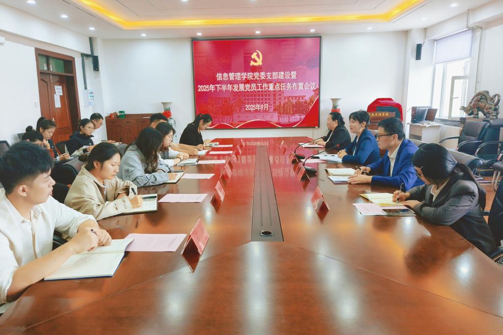 为切实加强学院党支部建设规范化水平,统筹推进2025年下半年党员发展工作,明确任务方向、压实工作责任,9月28日上午,信息管理学院在学院会议室召开党支部建设暨2025年下半年党员发展工作部署会。学院党委书记袁立莉、副书记赵丽明、正科级组织员李俊春、全体辅导员以及各党支部书记参加了会议。会议由学院正处级组织员陈玉刚主持。