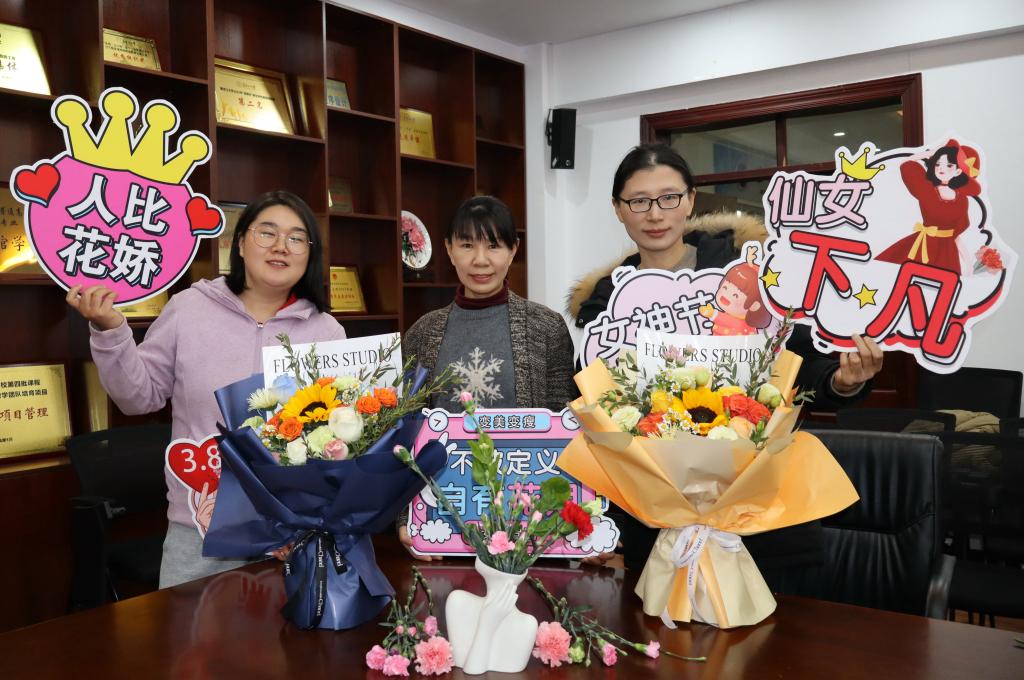 随后,任越为每位女教工送上鲜花,花束承载着学院的深切关怀,现场暖意融融、欢声笑语。花艺体验环节将活动推向高潮,女教工们精心挑选花材、构思造型、修剪搭配,一件件独具匠心的插花作品相继完成,大家在花香中舒缓身心、增进情谊,尽享花艺创作的乐趣。