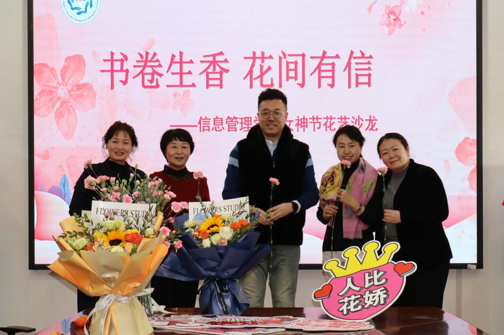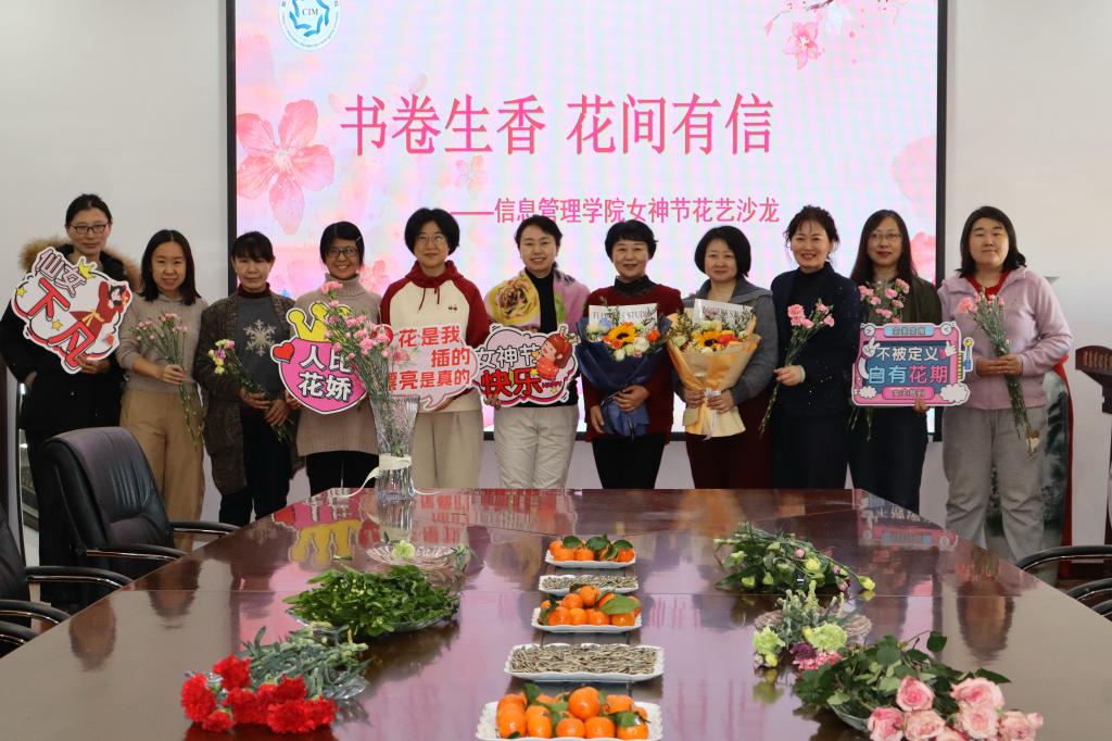 为庆祝第116个“三八”国际劳动妇女节,凝聚巾帼奋进力量,展现学院女教工巾帼风采,3月6日下午,信息管理学院在学院会议室举办“书卷生香 花间有信”花艺沙龙活动。学院领导班子成员、全体女教工参加活动,学院党委书记袁立莉主持活动。